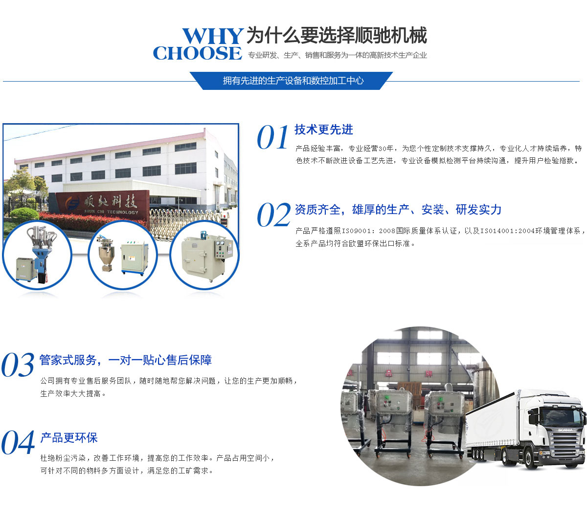 鹽城市順馳機(jī)械科技有限公司是一家專業(yè)從事電加熱設(shè)備、橡塑機(jī)械、化纖機(jī)械設(shè)備、化纖清洗設(shè)備、涂裝機(jī)械、烘干設(shè)備、環(huán)保設(shè)備、電熱電器的研發(fā)、生產(chǎn)、銷售和服務(wù)為一體的生產(chǎn)企業(yè),主要生產(chǎn)的產(chǎn)品有: 真空吸料機(jī),真空粉末吸料機(jī),失重式喂料機(jī),真空粉末上料機(jī),真空煅燒爐,稱重式混料機(jī)、導(dǎo)熱油加熱器、色母計(jì)量系統(tǒng)、原料輸送系統(tǒng)、混合機(jī)、空氣加熱器、熱風(fēng)爐、電加熱器等。 公司占地13333平方米,擁有先進(jìn)的生產(chǎn)設(shè)備和數(shù)控加工中心。公司地處世界珍奇動(dòng)物麋鹿保護(hù)區(qū)和國(guó)家一級(jí)丹頂鶴自然保護(hù)區(qū)&... [